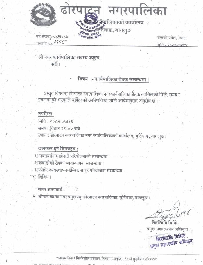 नगर कार्यपालिका बैठक सम्बन्धमा ।