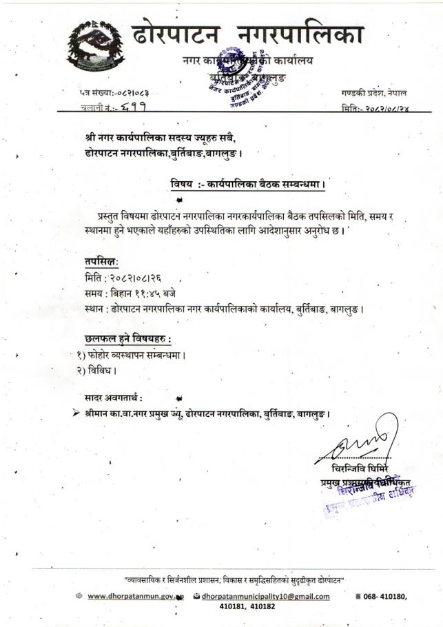 नगर कार्यपालिका बैठक सम्बन्धमा ।
