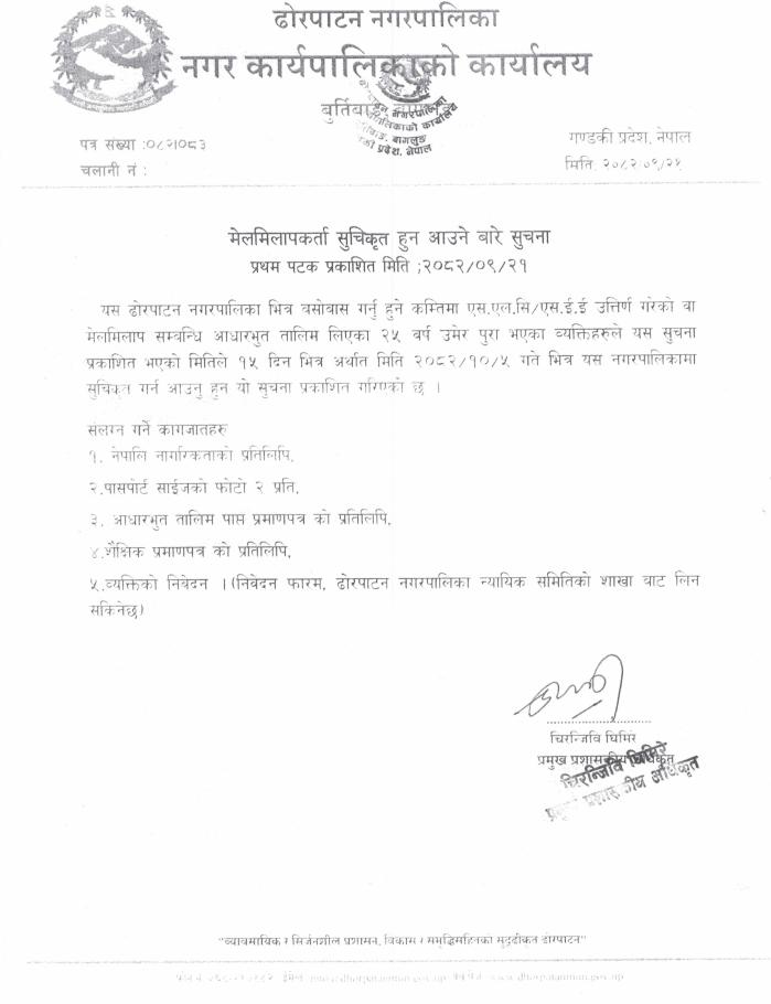 मेलमिलापकर्ता सुचिकृत हुन आउने सम्बन्धी सूचना ।