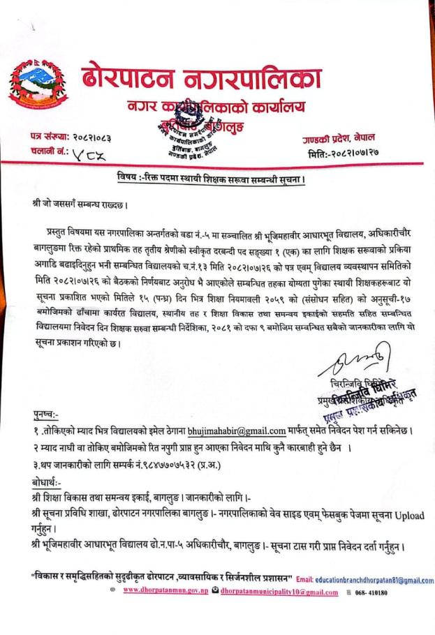 रिक्त पदमा स्थायी शिक्षक सरुवा सम्बन्धी सूचना ।