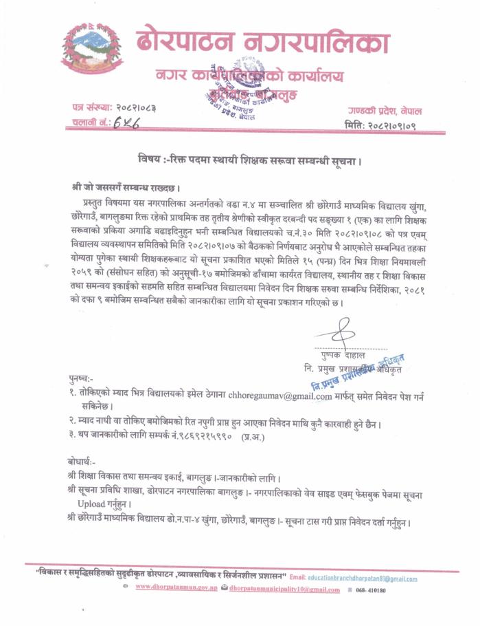 रिक्त पदमा स्थायी शिक्षक सरुवा सम्बन्धी सूचना ।