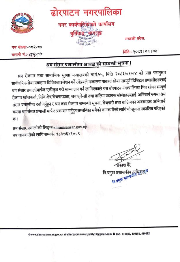 श्रम संसार प्रणालीमा आवद्ध हुने सम्बन्धी सूचना ।