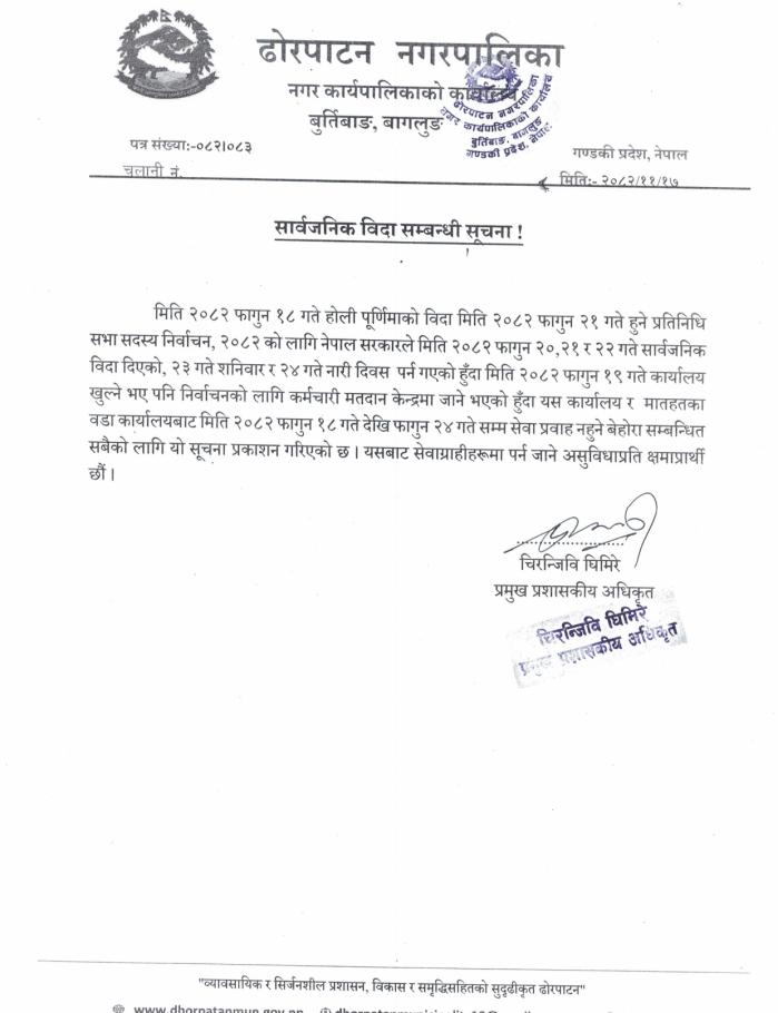 » सार्वजनिक विदा सम्बन्धी सूचना ।