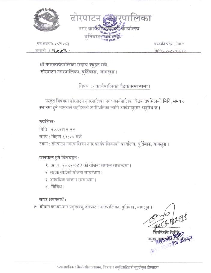 नगर कार्यपालिका बैठकमा उपस्थित हुने सम्बन्धमा ।