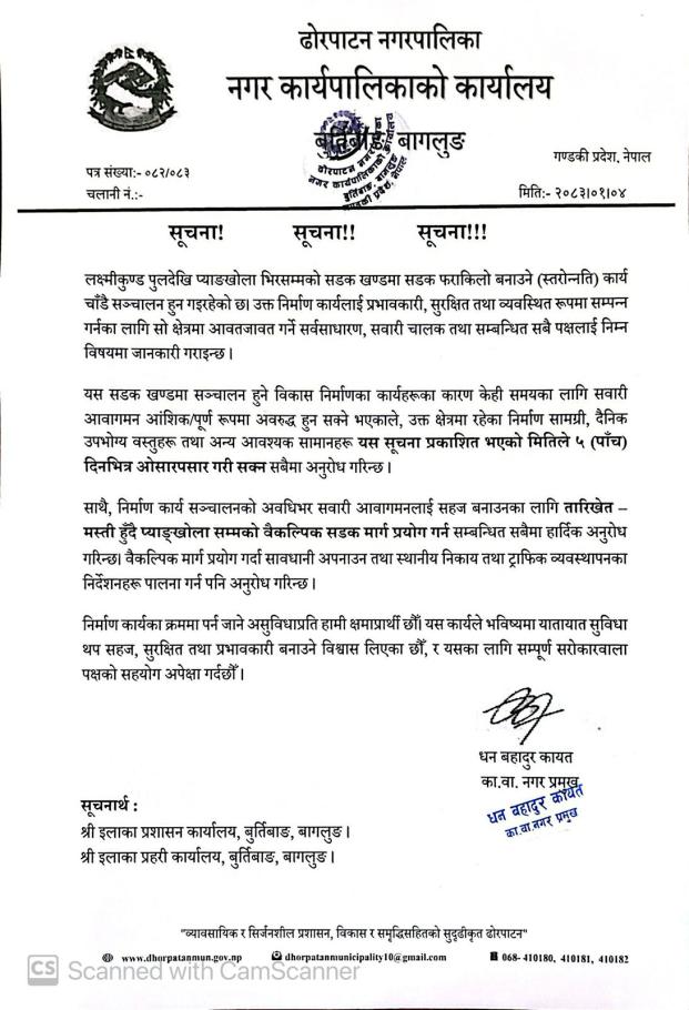 ढोरपाटन नगरपालिकाको आवधिक योजना तर्जुमा गर्नु पर्ने भएकोले सूची दर्ता गराउने सम्बन्धी सूचना ।
