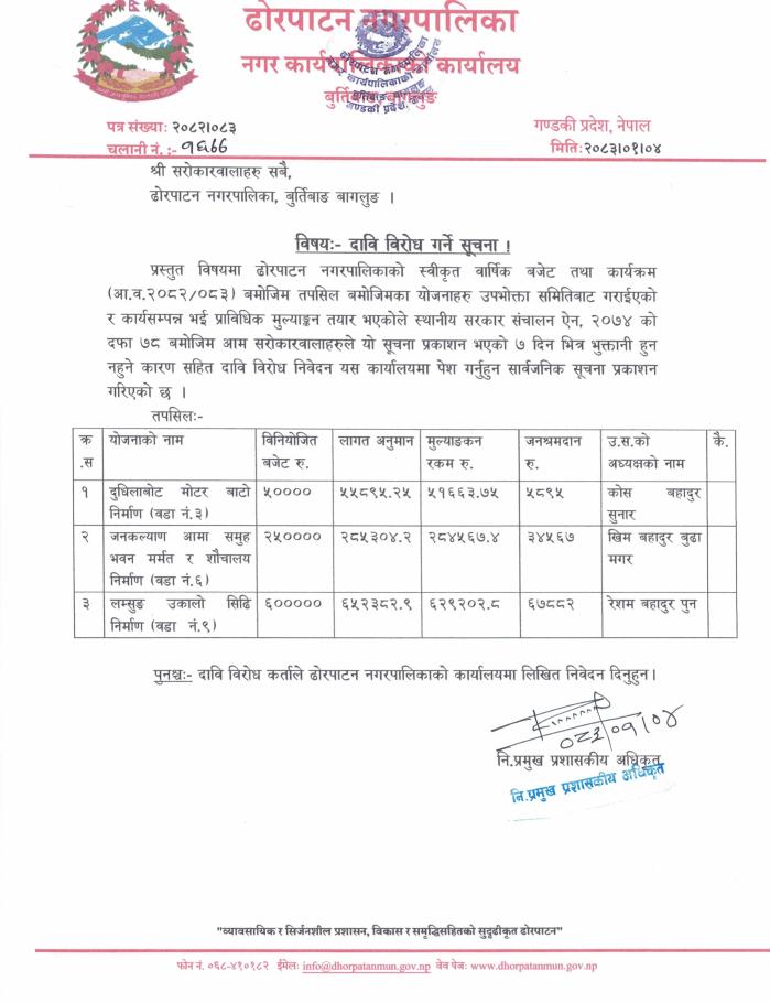 दावि विरोध गर्ने सूचना ।