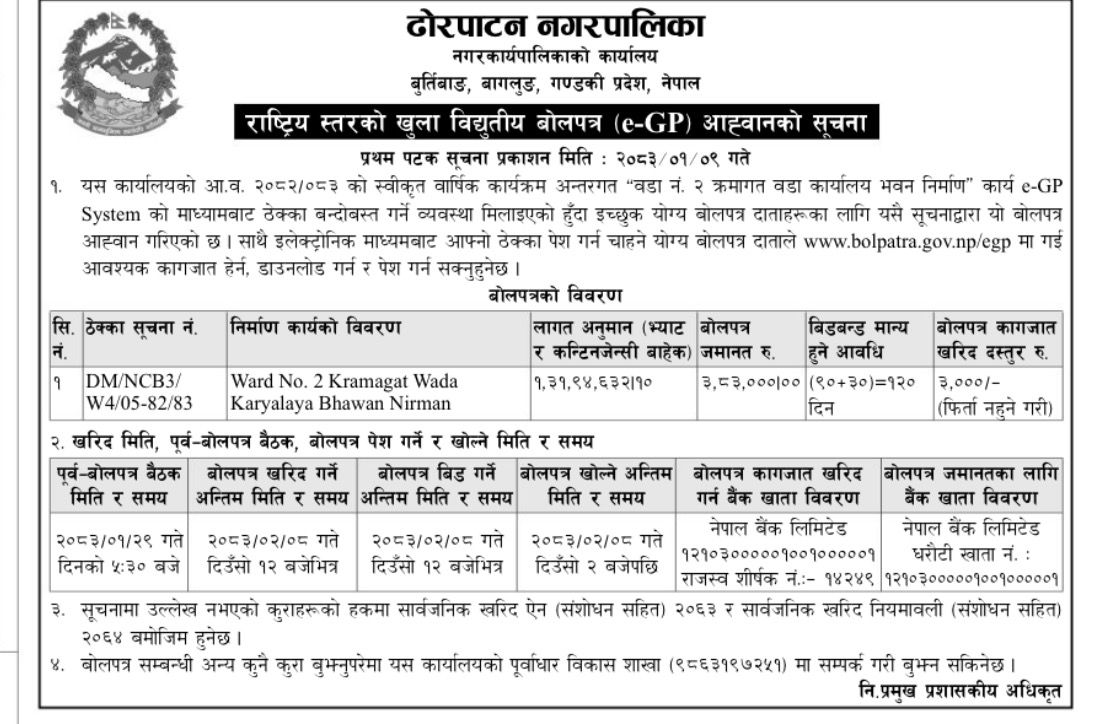 » राष्ट्रियस्तरको खुला विद्युतीय बोलपत्र e-GP आव्हानको सूचना ।