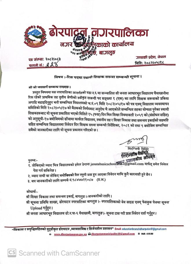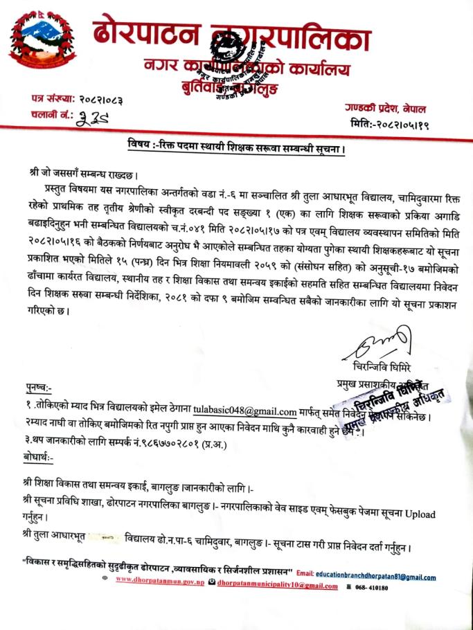 रिक्त्त पदमा स्थायी शिक्षक सरुवा सम्बन्धी सूचना ।